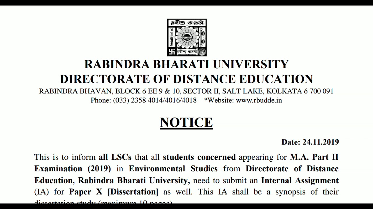 Rabindra Bharati University Distance Education Dates Of Internal Assessment For M A Semester Iv Examination 2019 Only Academic Session 2017 2018 Https Www Rbudde In Pdf 031020 01 Pdf Facebook